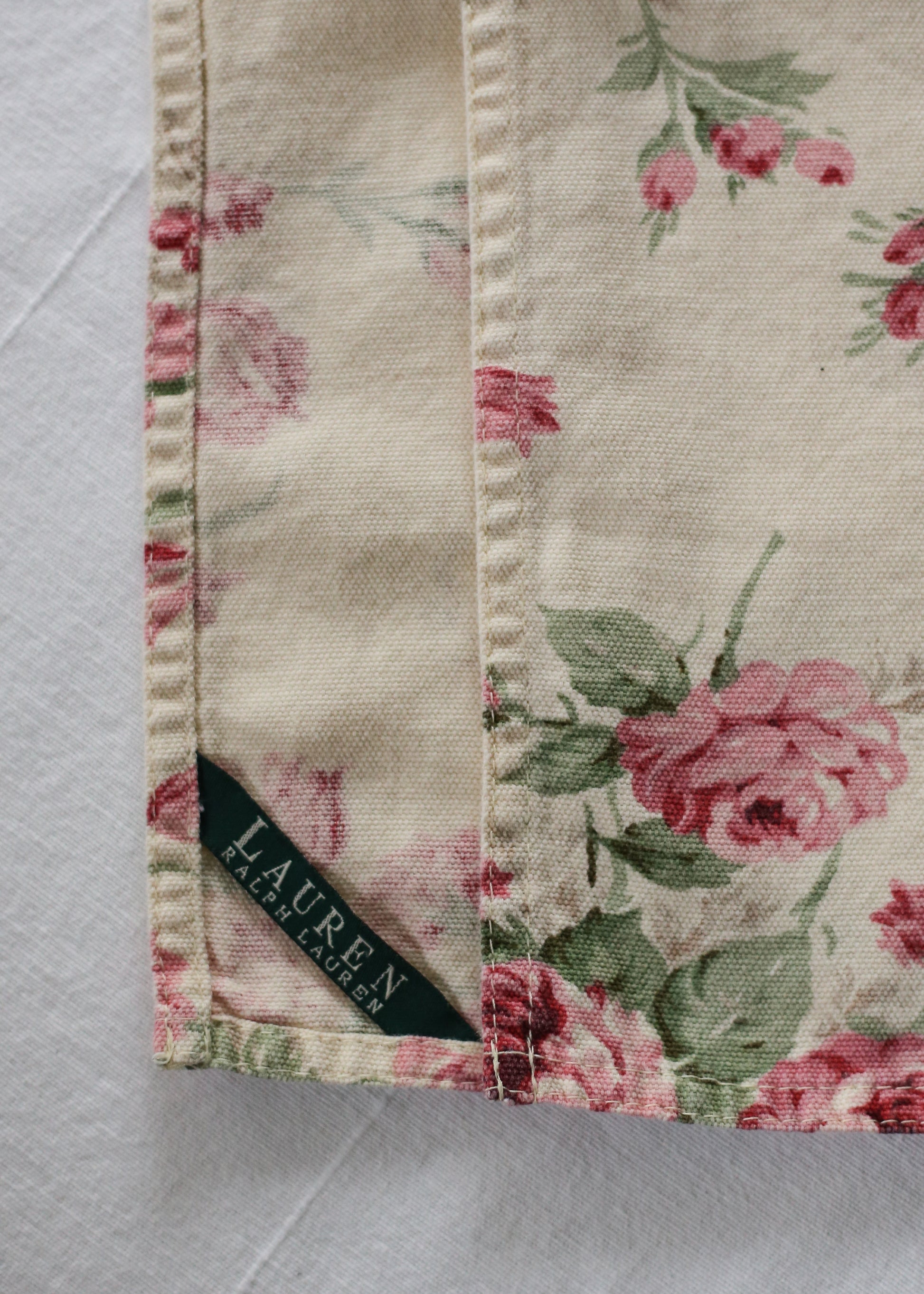 These stunning vintage napkins from Lauren by Ralph Lauren are an ideal choice for anyone who loves to entertain. A soft neutral background adorned with delicate pink peonies and tulips, these napkins bring timeless charm and elegance to any table setting.